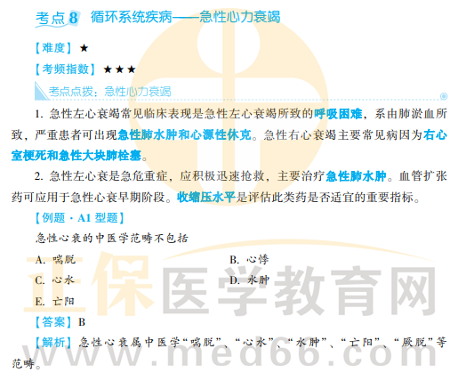 2022年中西医助理医师考点循环系统疾病———急性心力衰竭如下,2022年中西医助理医师考试复习如火如荼,你还没有加入备考大军吗?立即开启中西医助理医师考试精选考点的学习吧!2022年新课免费试听>>