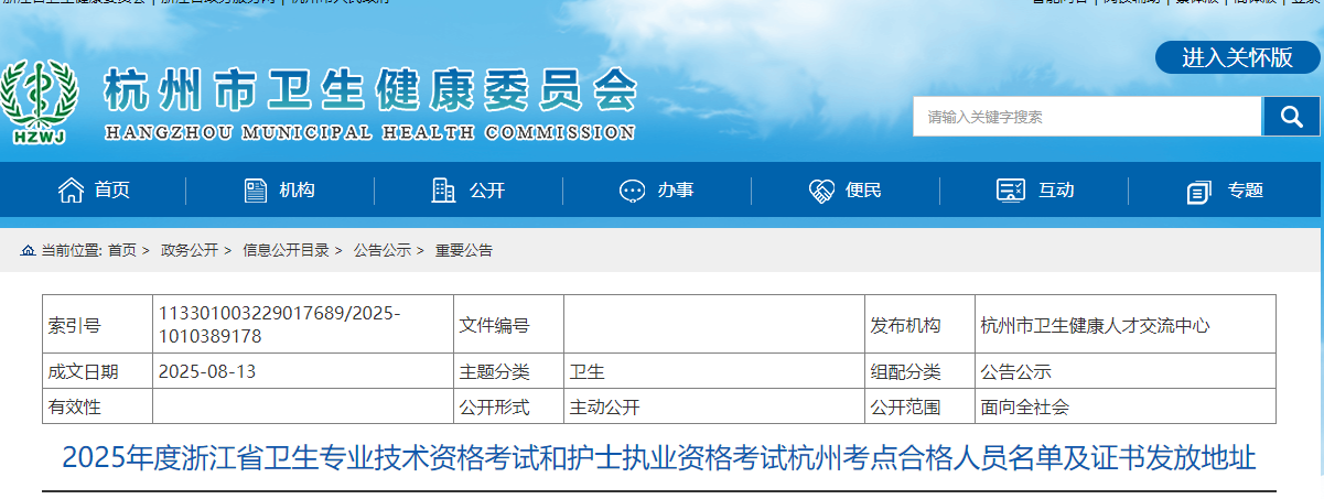 现将2025年度浙江省卫生专业技术资格考试和护士执业资格考试杭州考点合格人员证书领证地址予以公布,请相关人员及时到指定地点领取(详见附件)。