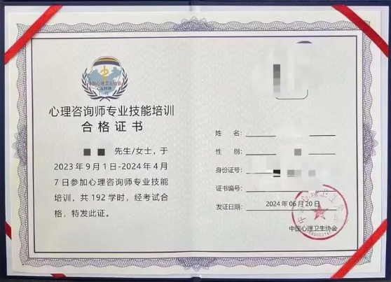 心理咨询师证书样本