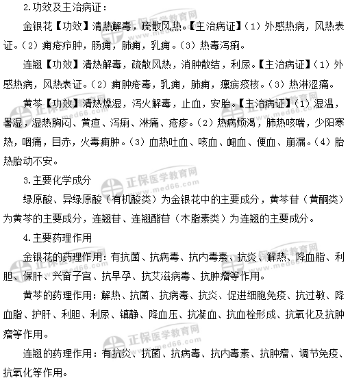 1.金银花、连翘、黄芩均能清热解毒,均可归肺经,对肺热、肺痈有治疗作用,但是因为药性寒凉,脾胃虚寒者均不宜服用。