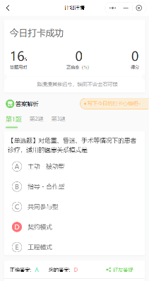 做完题后,可以查看每道题的解析和整体做题情况,然后点击“分享今日打卡心情”,输入您要记录的内容,提交即可完成打卡。