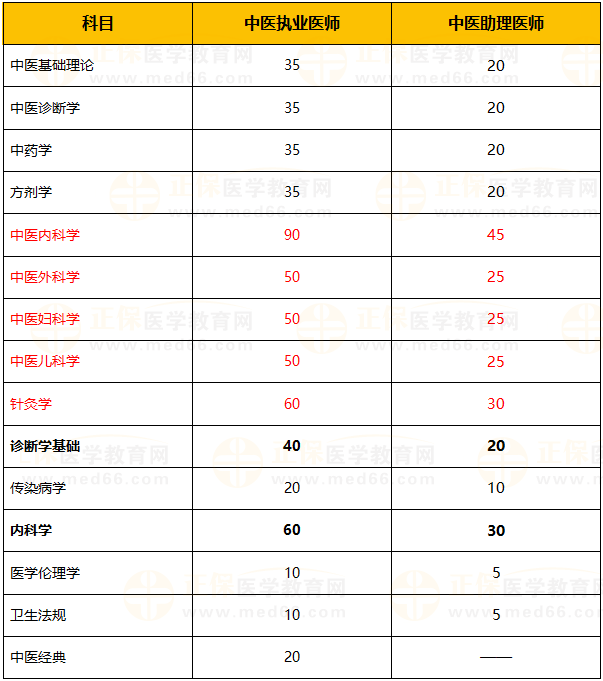 中医执业/助理医师近4年各科目考查分值