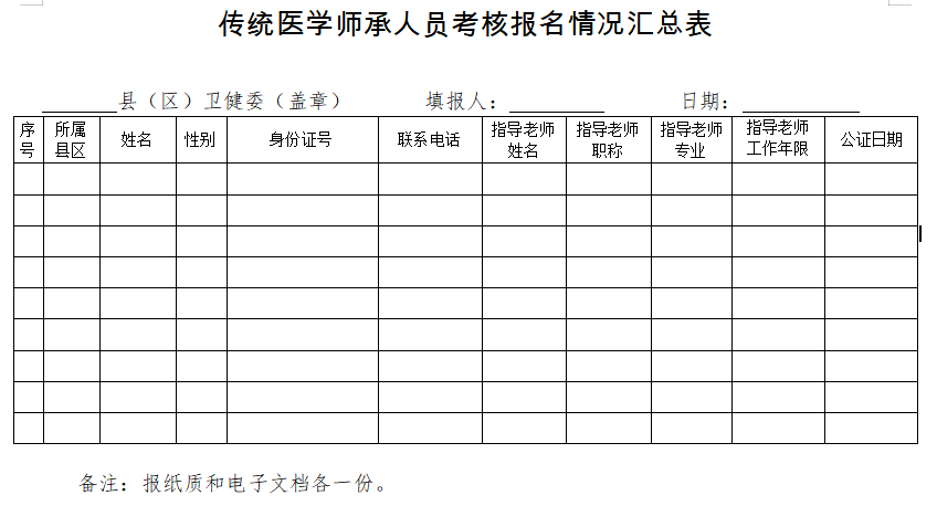 附件下载:传统医学师承人员考核报名情况汇总表