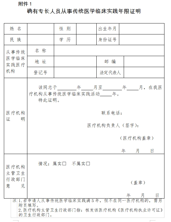 附件下载:确有专长人员从事传统医学临床实践年限证明