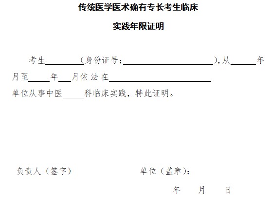 附件下载:北京传统医学医术确有专长考生临床实践年限证明