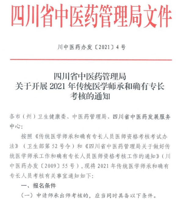四川省中药管理局关于开展2021年传统医学师承和确有专长考试通知