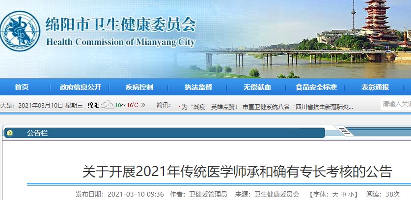 绵阳市2021年传统医学师承和确有专长考试报名及审核通知