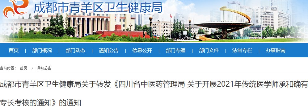 成都市武侯区2021年传统中医师承人员医师考核报名及考试通知