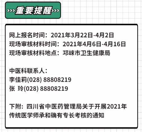 成都市邛崃市2021年传统师承考试报名3月22日起!