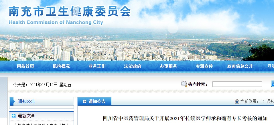 南充市2021年传统医学师承和确有专长考核报名仪陇县考务通知