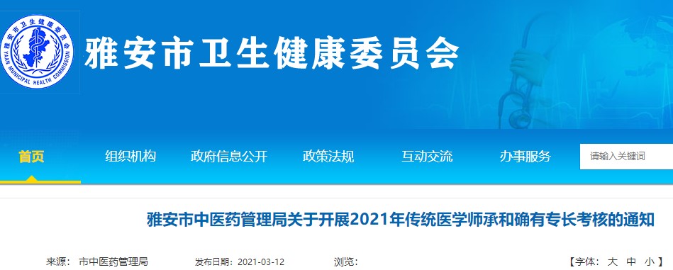 雅安市2021年传统师承考试报名不能跨区县报名!3月22日起