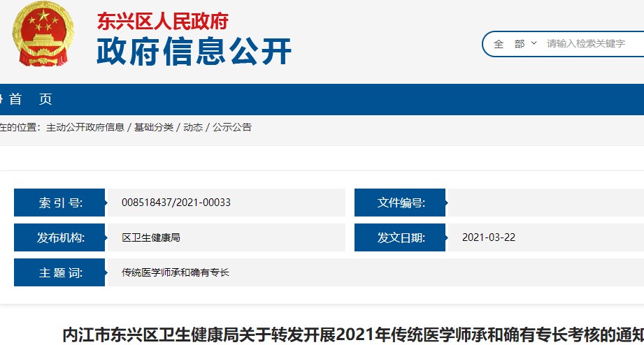 内江市东兴区2021年传统师承和确有专长考试网报4月2日截止