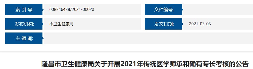 传统医学师承出师考核时间为2021年5月27日和5月28日,传统医学师承统一到成都集中考核,由省中医药管理局组织统一命题、统一阅卷,具体时间和地点以准考证为准。