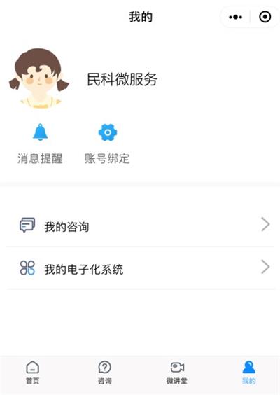 1、在民科微服务小程序【我的】中,点击【我的电子化系统】