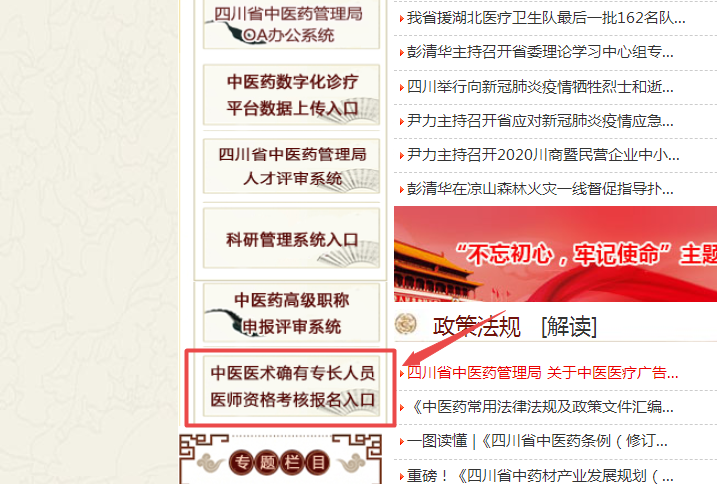 四川省2020年中医医术确有专长医师资格考核报名网站