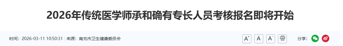 按照《传统医学师承和确有专长人员医师资格考核考试办法》(卫生部第52号令)和《四川省中医药管理局关于做好传统医学师承工作和确有专长人员医师资格考核工作的通知》(川中医药办发〔2009〕55号),现将2026年传统医学师承和确有专长人员考核有关事宜通知如下。