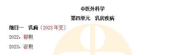 以上为“2023年中医执业助理医师官方教材《中医外科学》科目变动详情”全部内容,由医学教育网小编整理,更多信息请随时关注医学教育网。