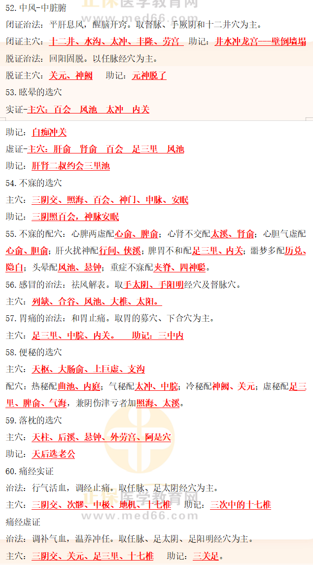 2021年中医执业助理医师考试二试高质量考点汇总《针灸学》30条