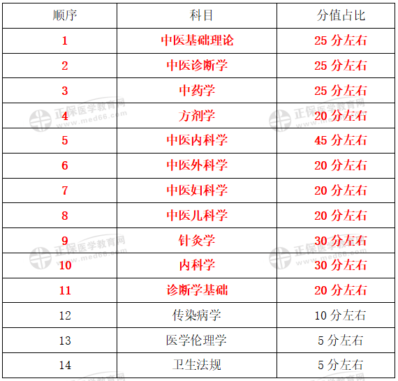 以下为中医执业助理医师科目分值比例,仅供参考: