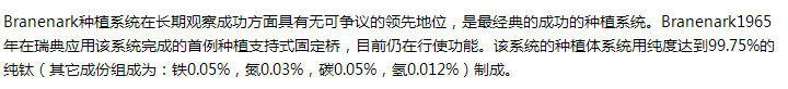 这套系统因其创始人Branenark教授而得名,又因其生产厂家而被称为Nobelpharma系统。