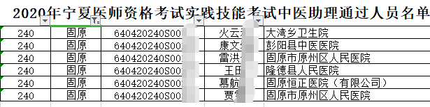 附件:宁夏考区2020年医师资格考试实践技能考试合格人员名单.xls