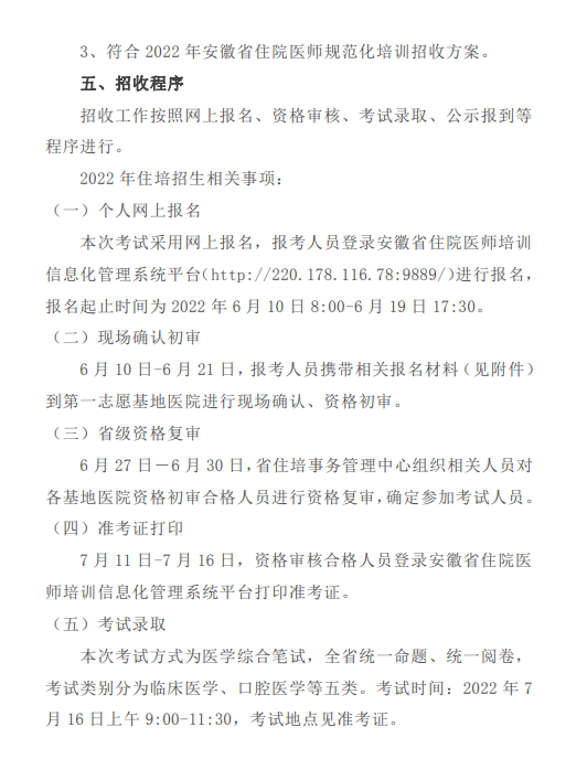 推荐阅读:安徽省2022年住院医师规范化培训招生人数及招生简章汇总