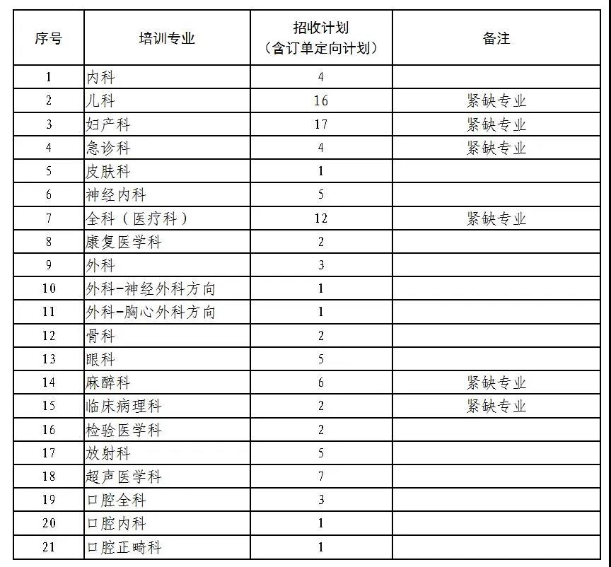 宁夏回族自治区妇幼保健院2021年住院医师规范化培训招生计划