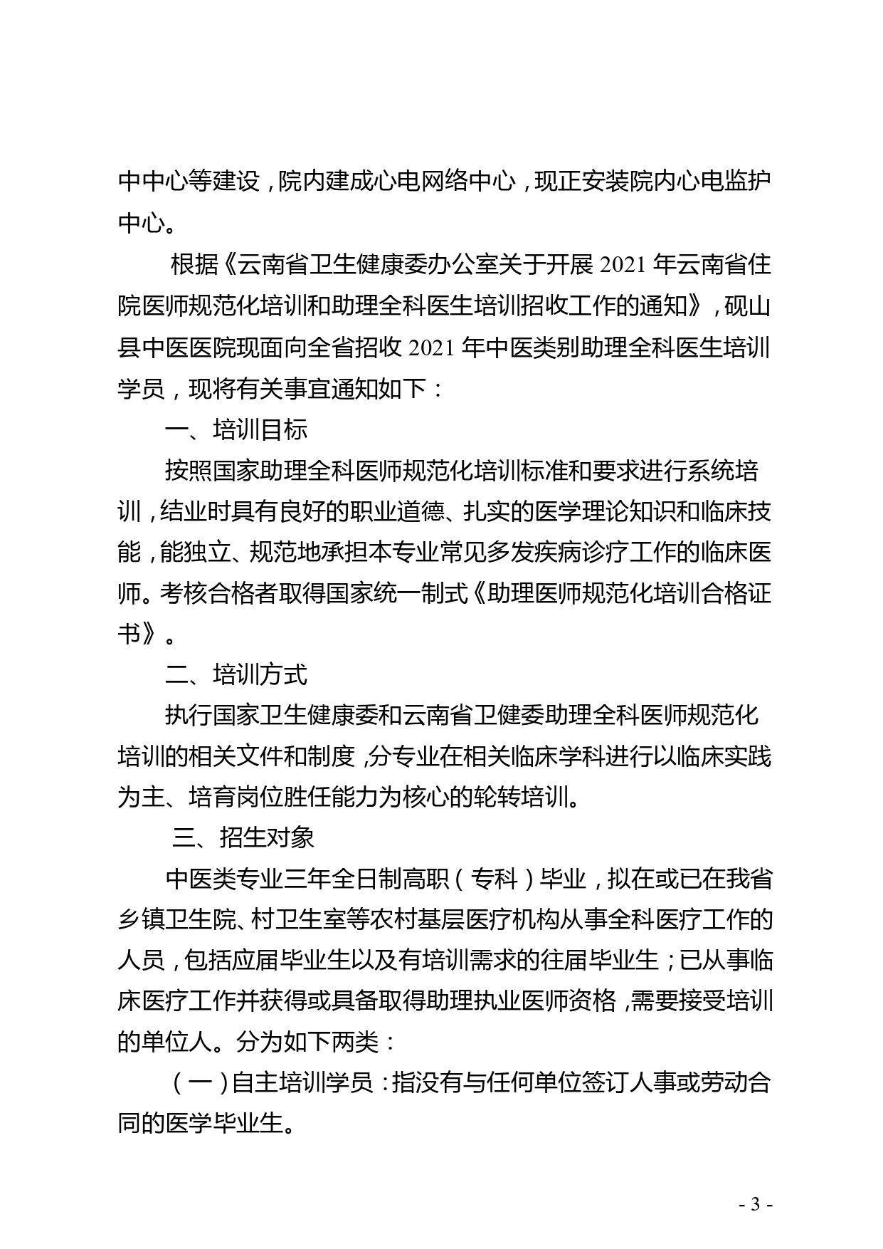 住院医师规范化培训是医师成长的必经之路。寻找一个适合自己的住院医师规范化培训基地十分重要。好消息,日前,“砚山县中医医院”发布了“2021年砚山县中医医院中医类别助理全科医生培训基地招录通知”,希望对您有所帮助!