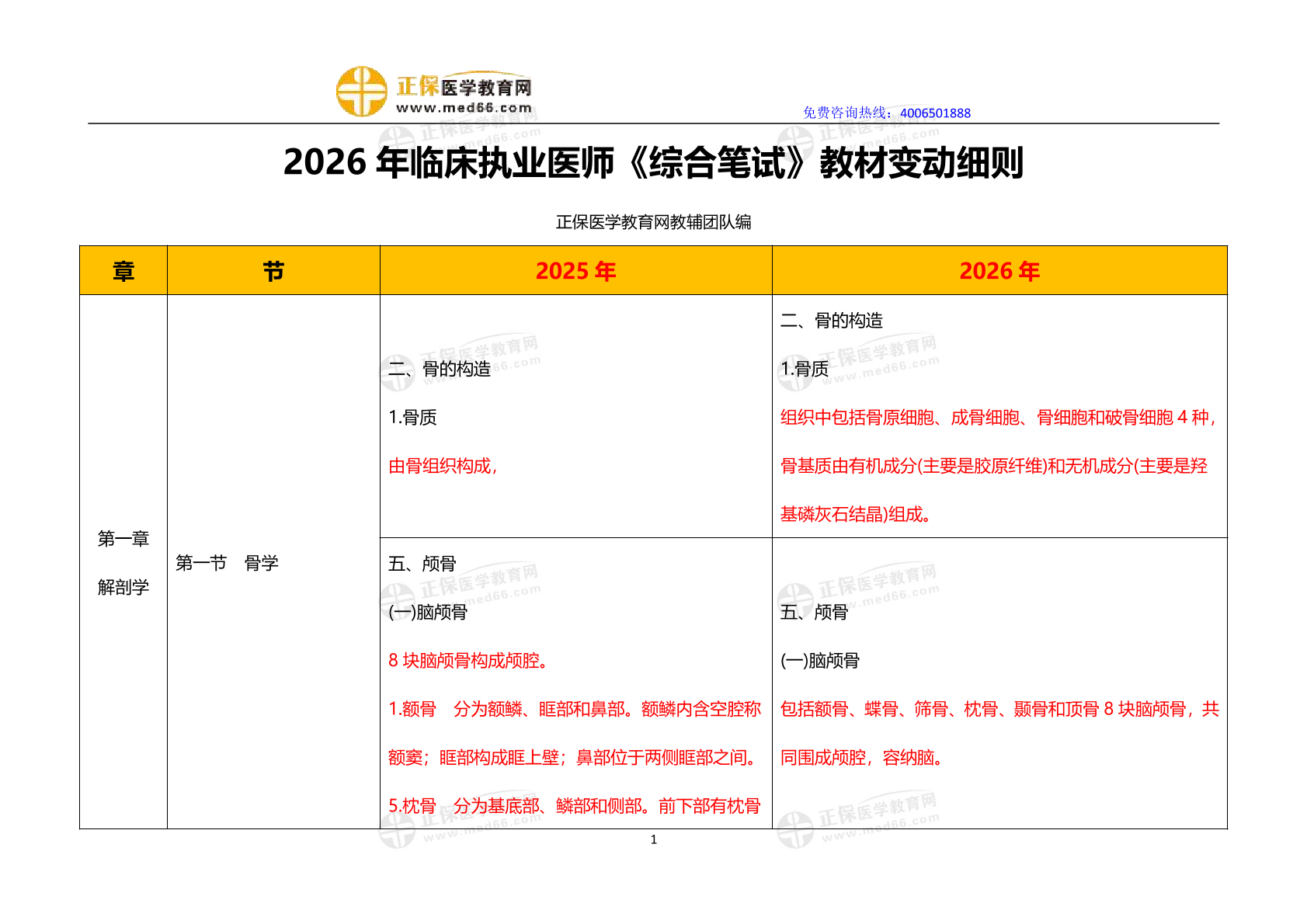 2026年临床执业医师《综合笔试》教材变动细则