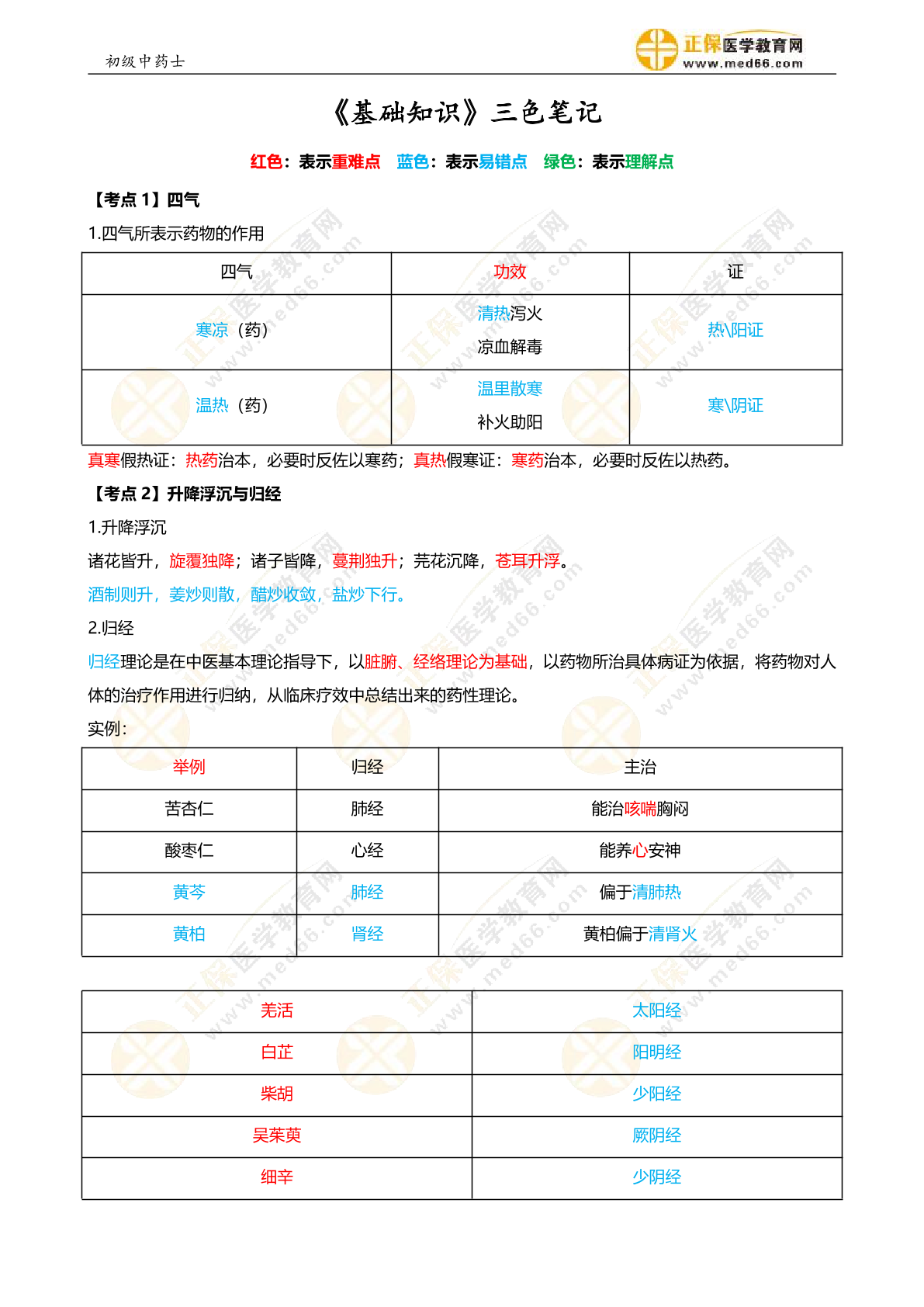 初级中药士《三色笔记》